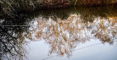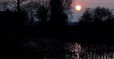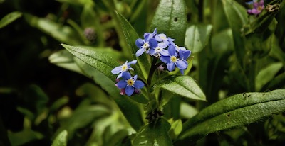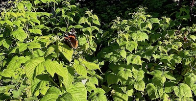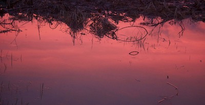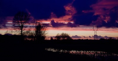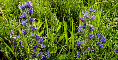 Éclairés en contre-jour, des feuilles de massettes et des fleurs de salicaires, avec des reines des prés.